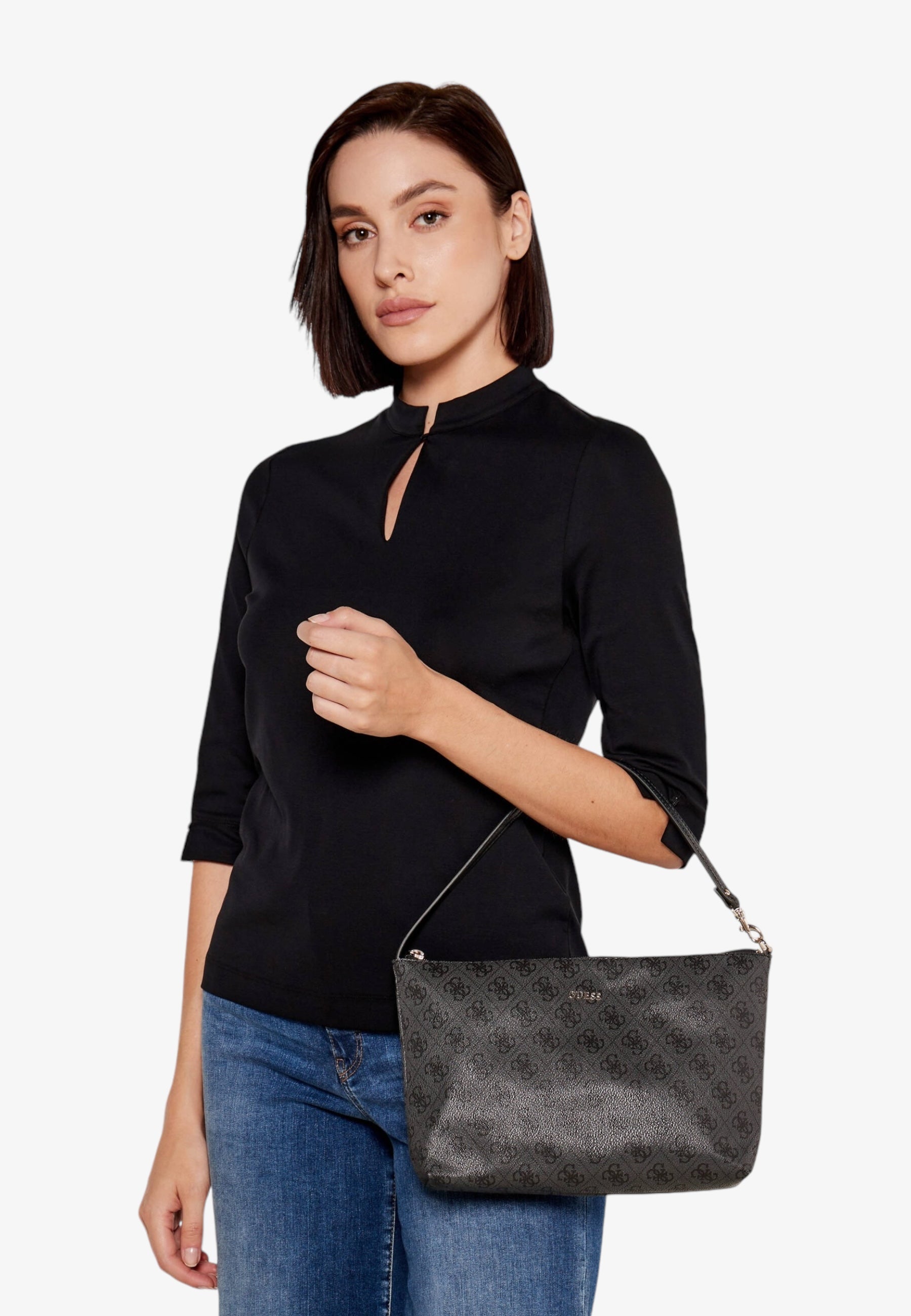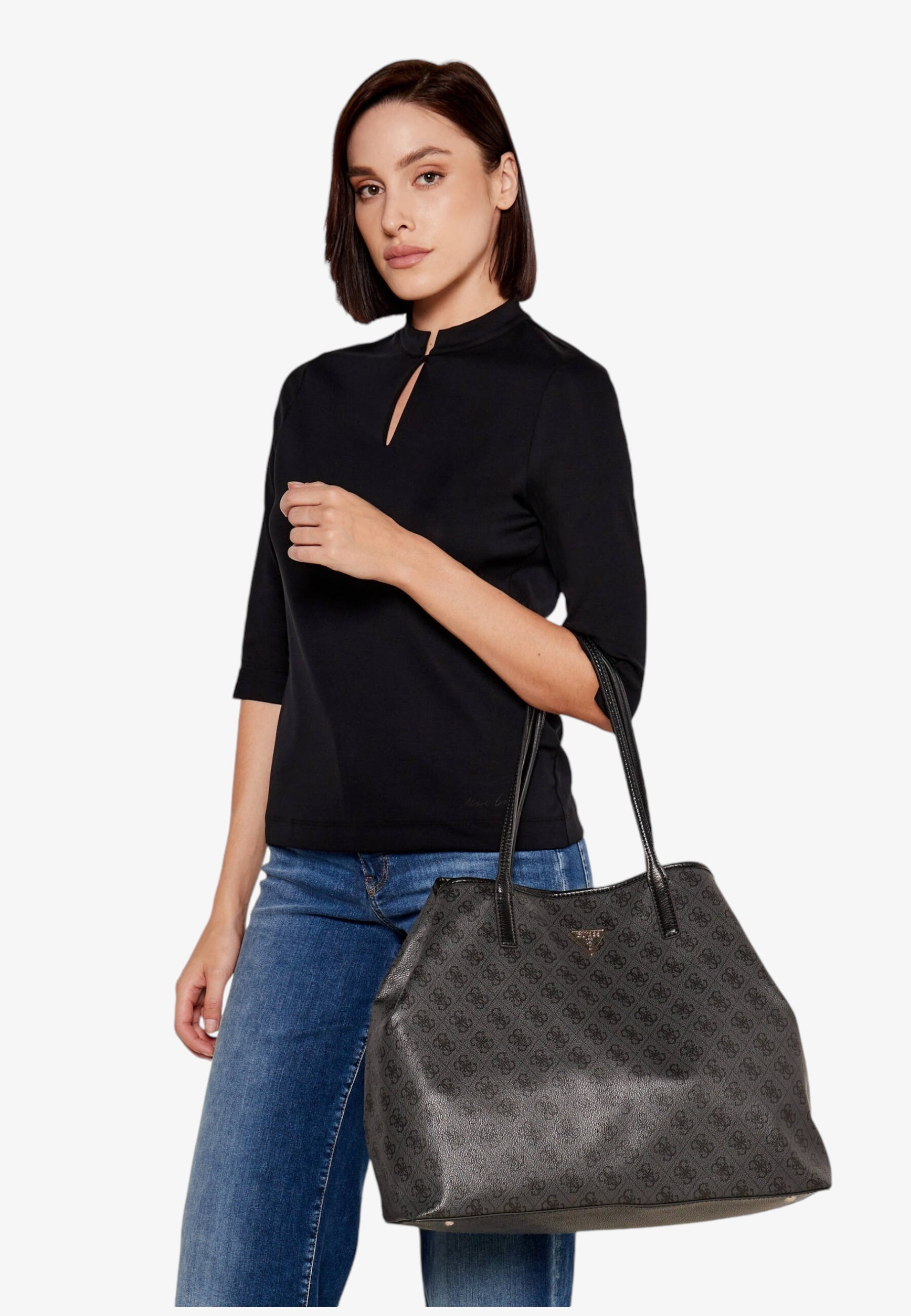 Guess grande borsa a mano senza chiusura con aggiunta di tracolla e pochette interna.
