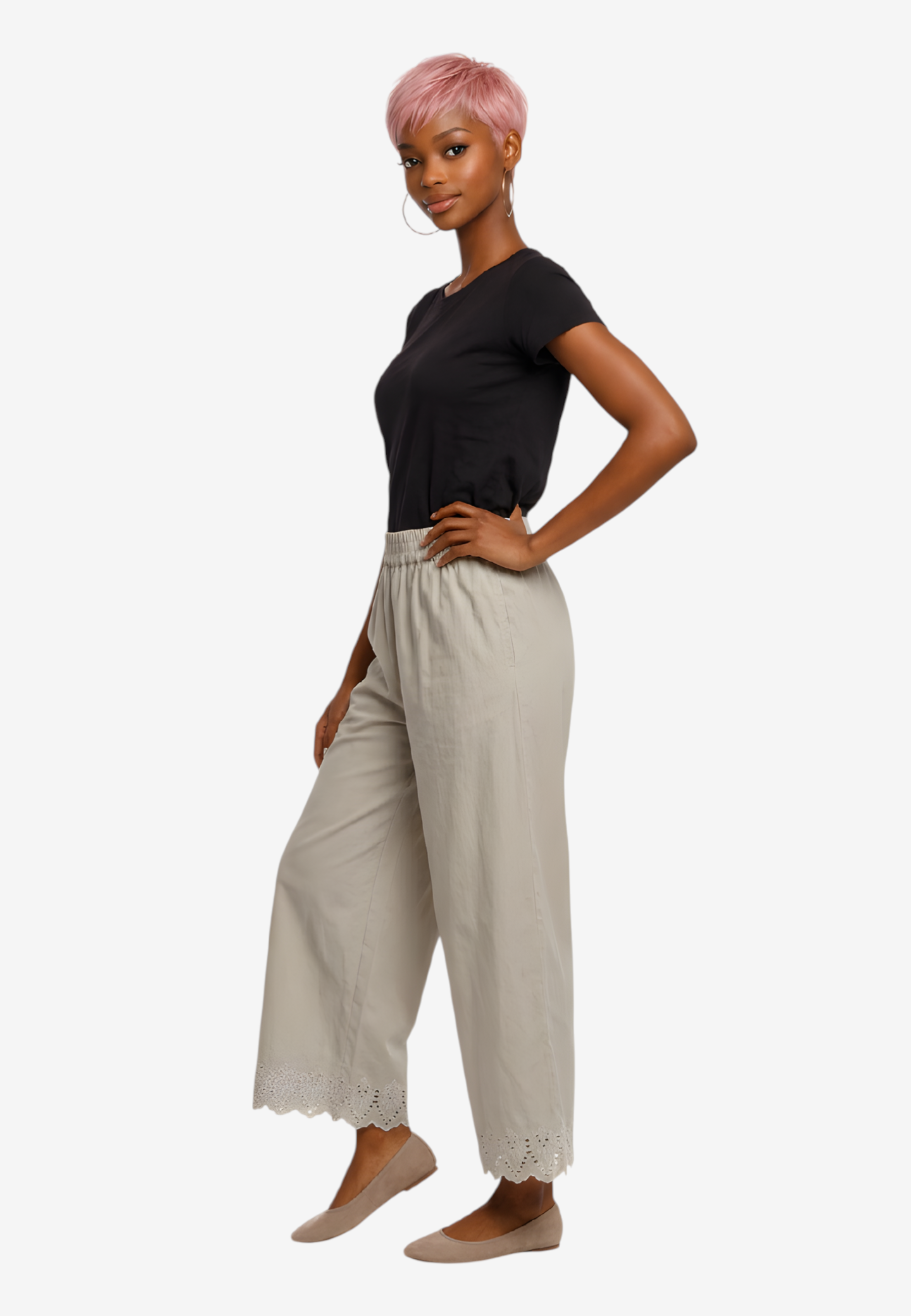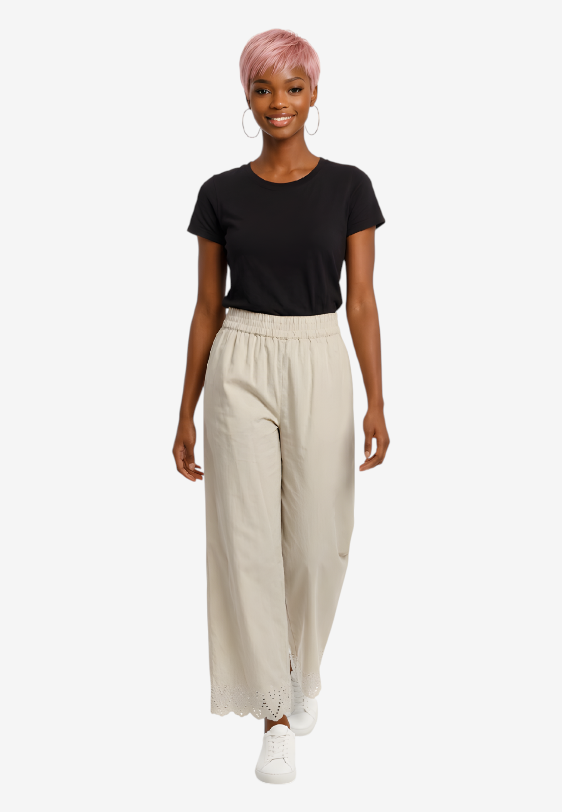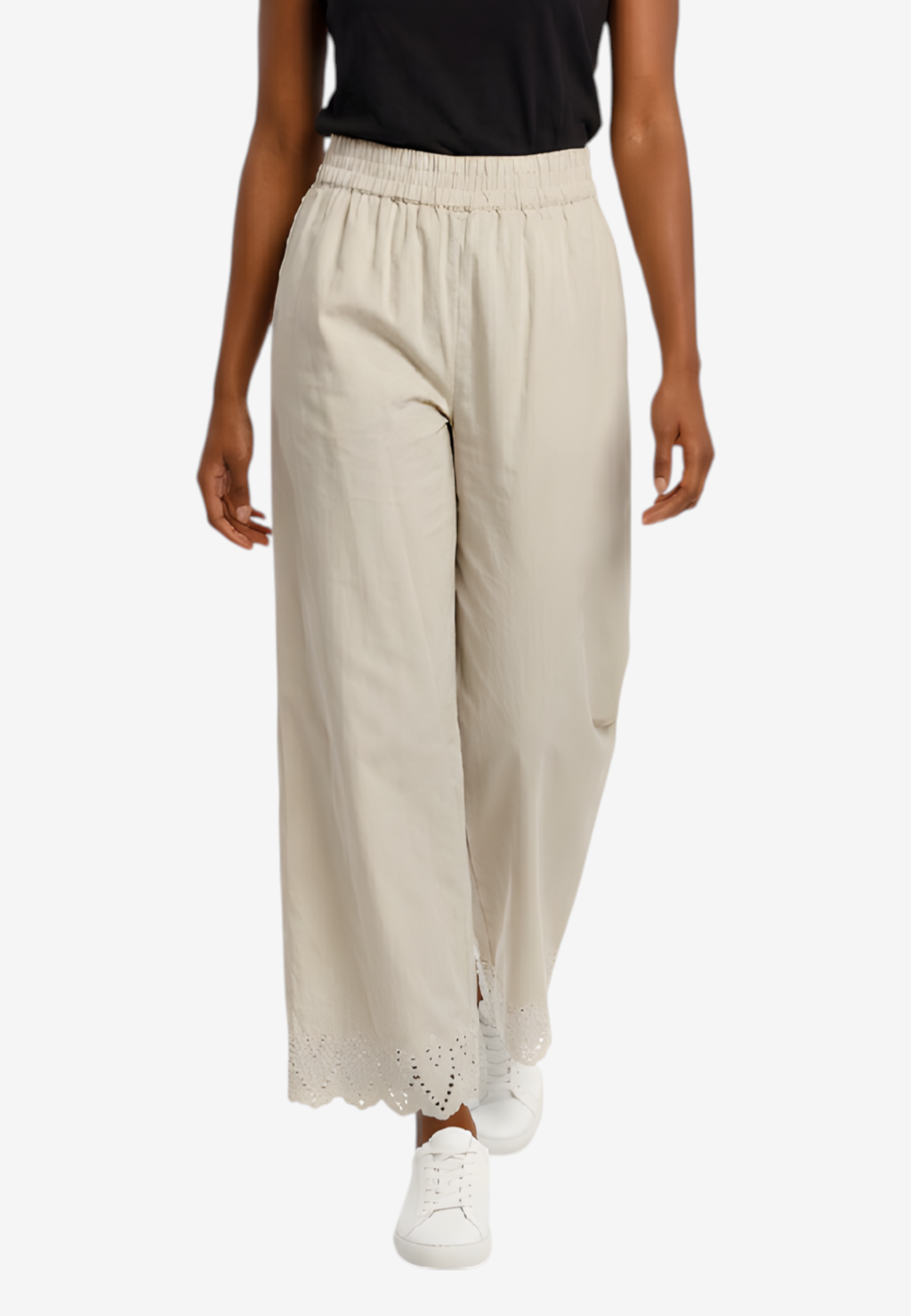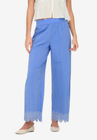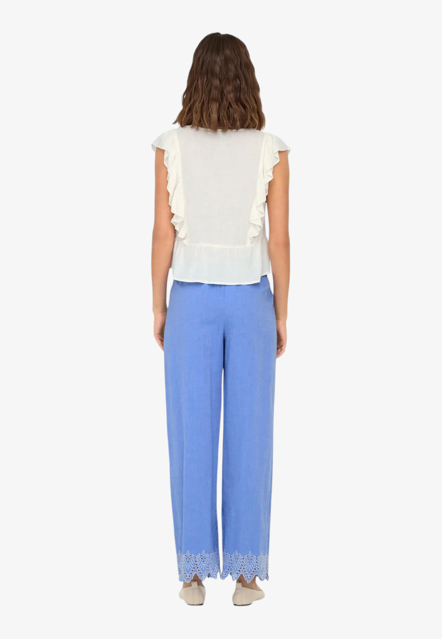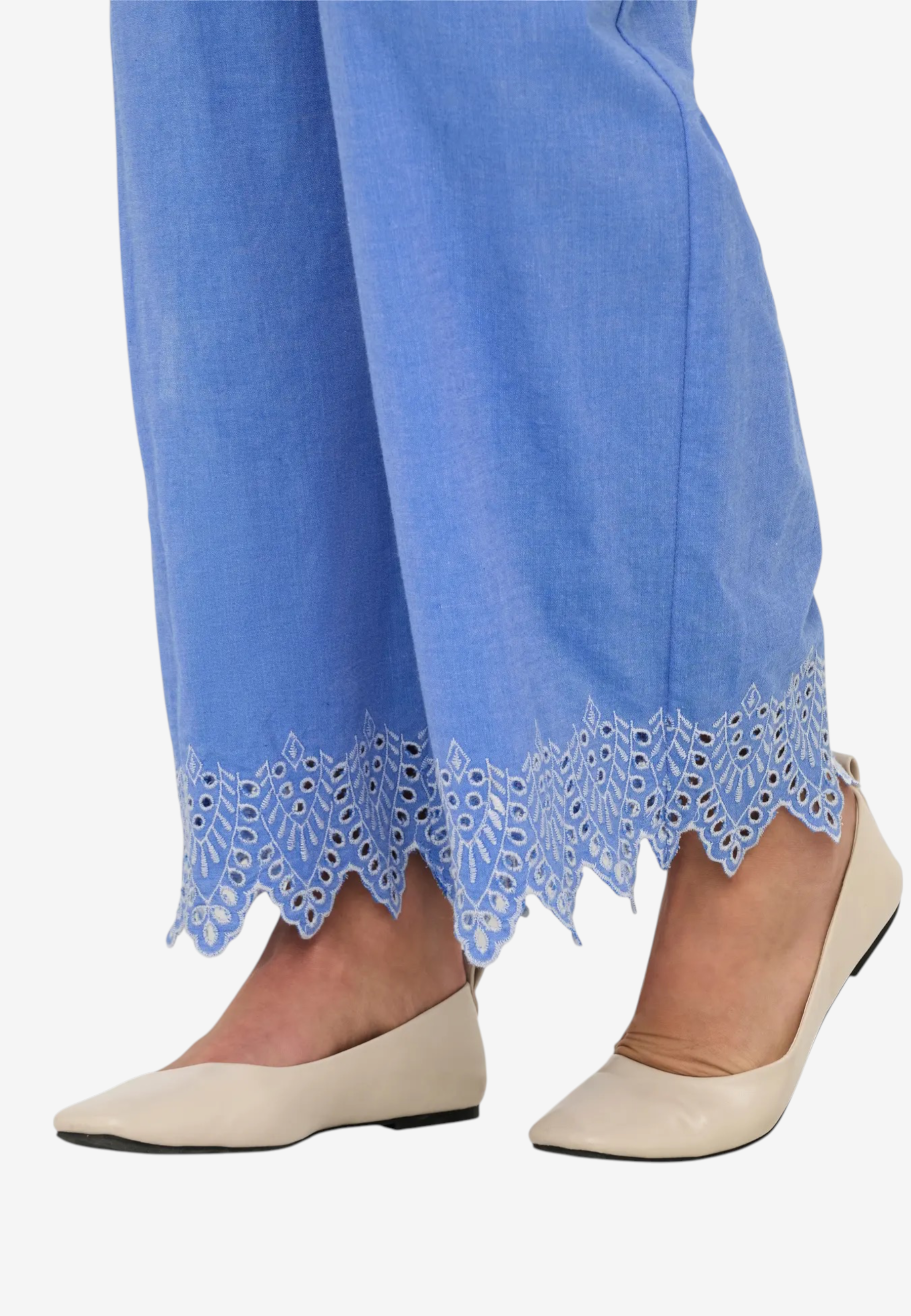 Pantalone palazzo in puro cotone leggero con coulisse regolabile e ricamo distintivo al fondo. Silhouette comoda e fresca, perfetta per la stagione estiva. Design senza tempo che si adatta a qualsiasi occasione, dalla città alla spiaggia. La vestibilità generosa garantisce libertà di movimento e comfort tutto il giorno. Un essenziale versatile che eleva qualsiasi outfit con eleganza femminile e semplicità sofisticata.