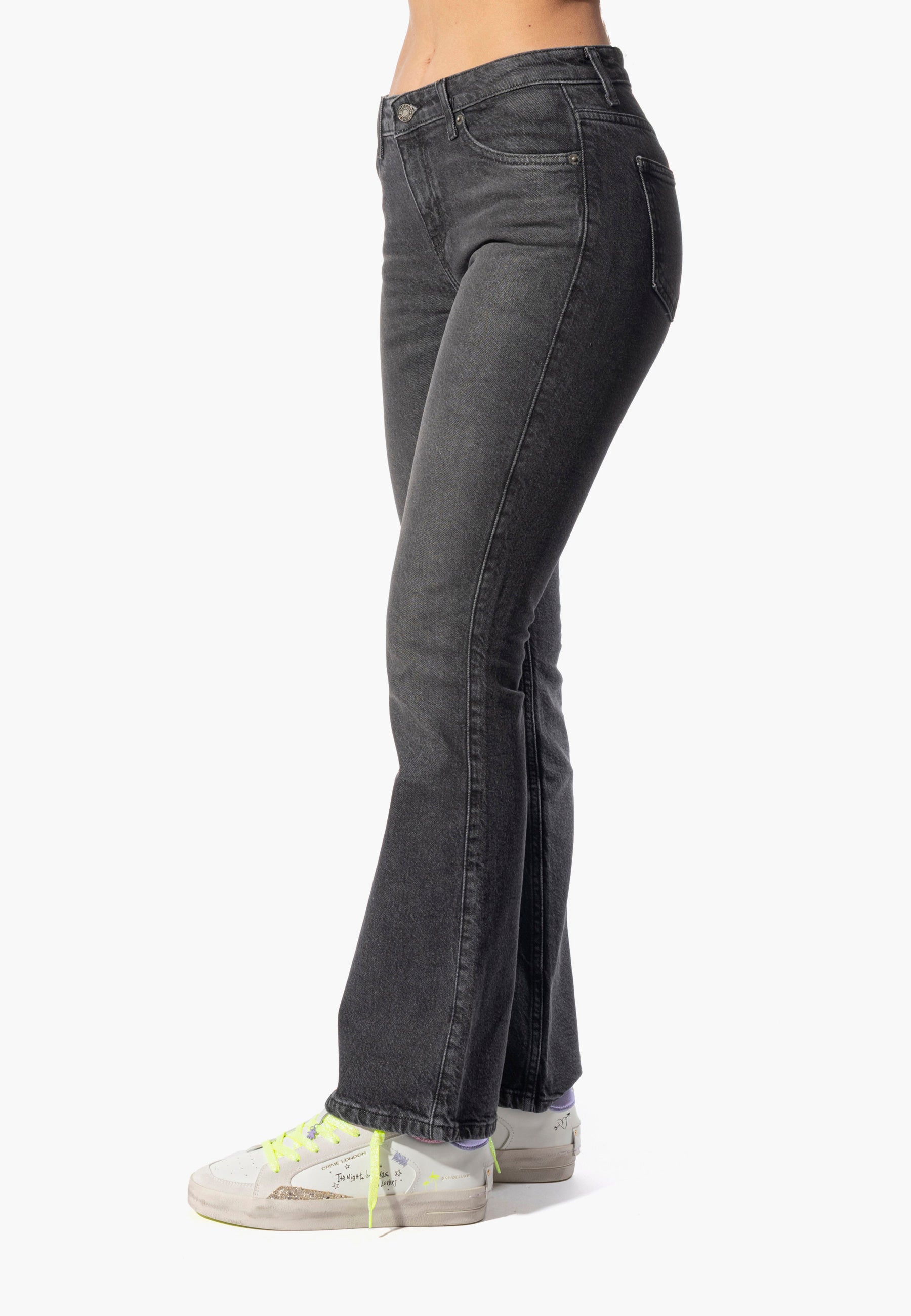 Vestibilità regular e gamba svasata.