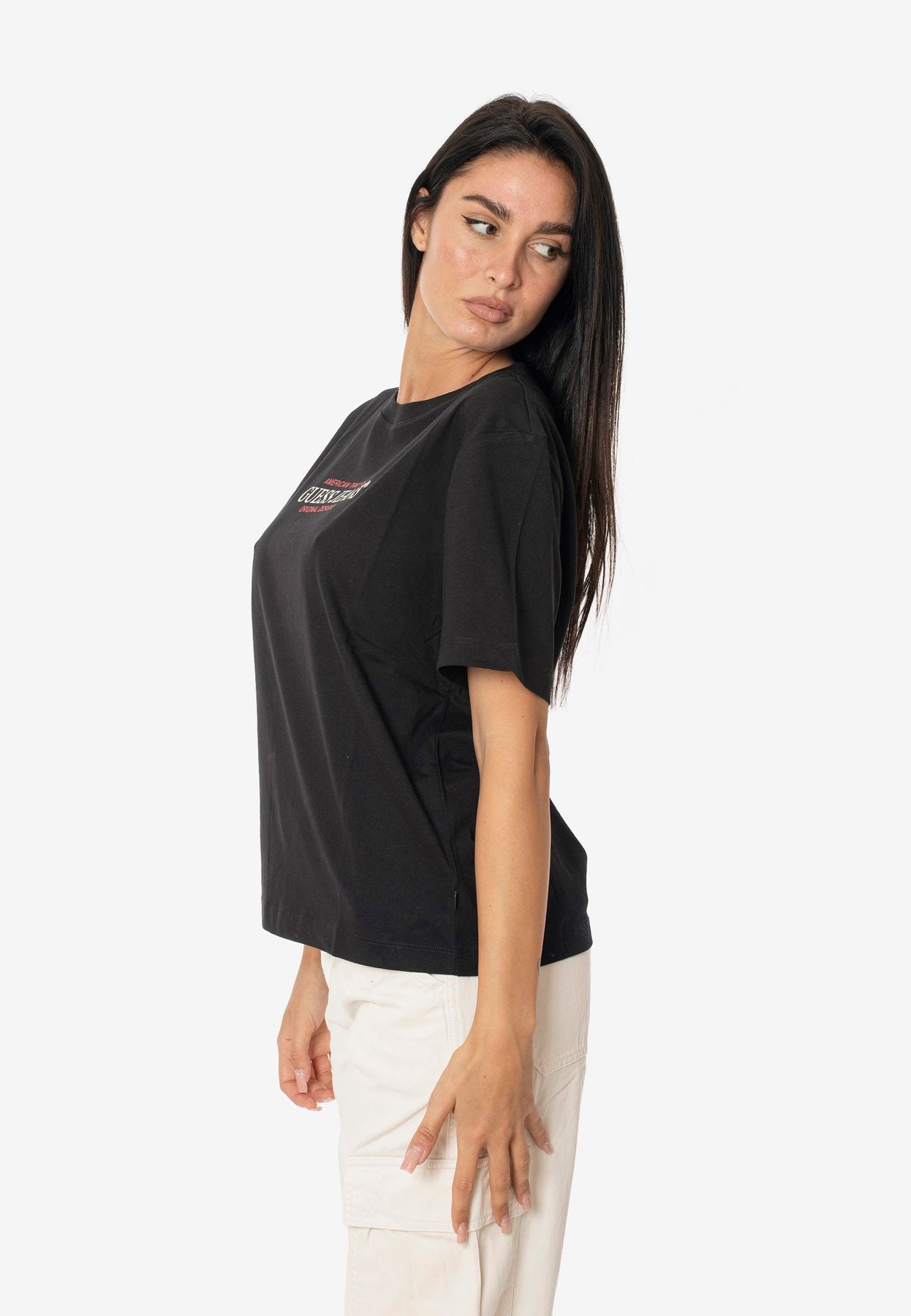 Realizzata in cotone organico al 100%, la classica t-shirt American Tradition viene proposta in versione boxy oversize.