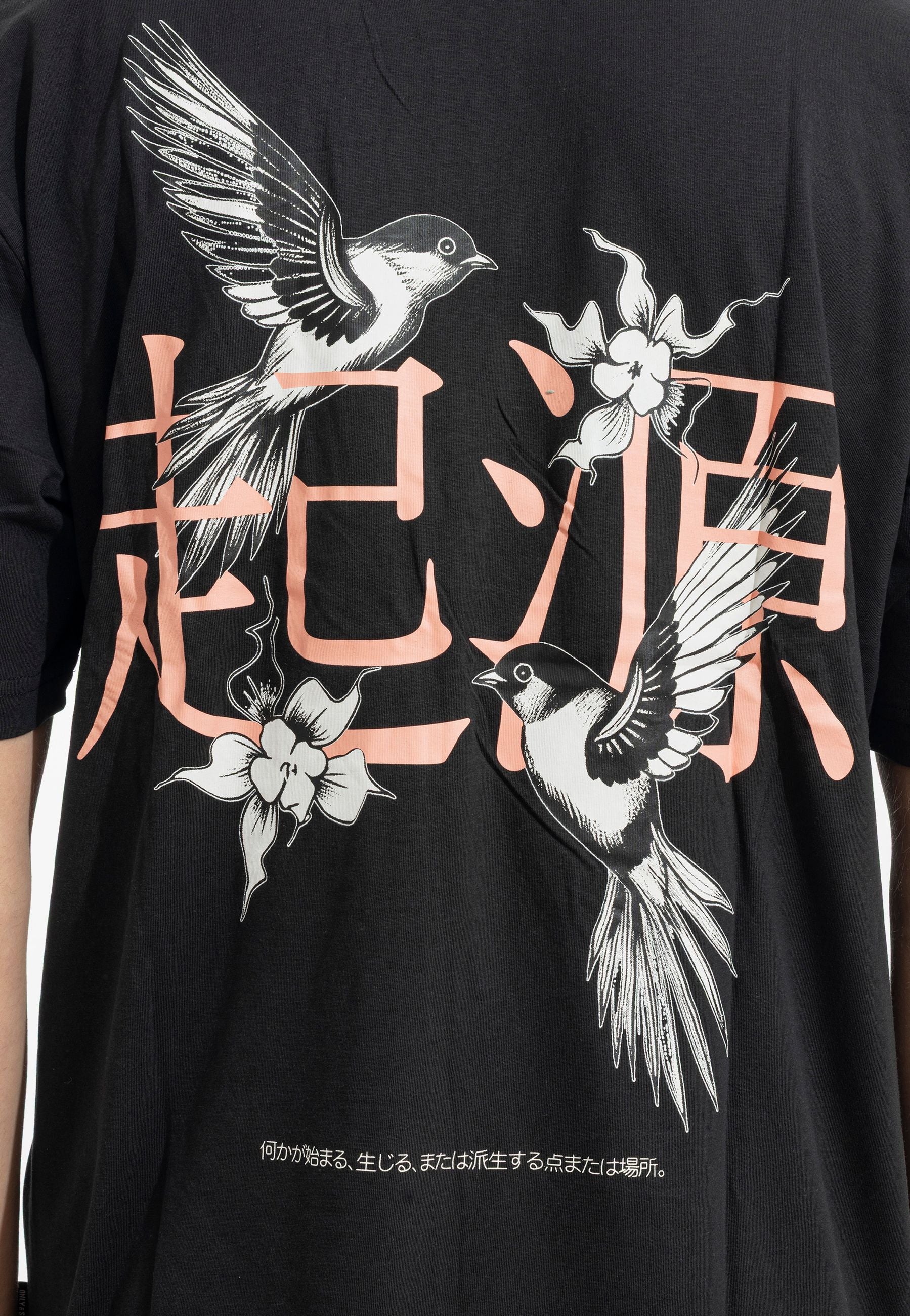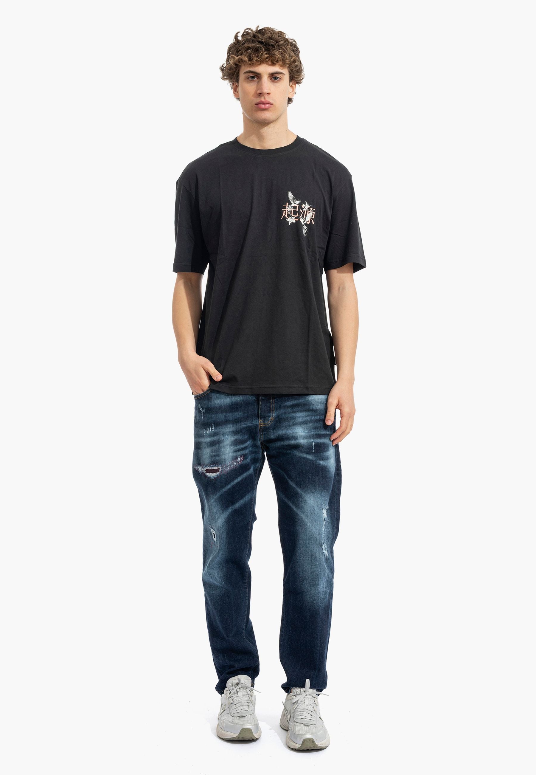 La T-shirt 6 ODHIN unisce artigianalità e sostenibilità con una stampa esclusiva di uccelli cinesi. Realizzata in cotone biologico certificato, il jersey morbido e elasticizzato garantisce comfort e libertà di movimento. Il design minimalista con collo a paricollo e maniche corte in relaxed fit crea un equilibrio perfetto tra eleganza contemporanea e semplicità. La stampa raffigura motivi ispirati alla tradizione orientale, trasformando questa maglietta in un pezzo versatile che racconta una storia di qualità e consapevolezza ambientale.