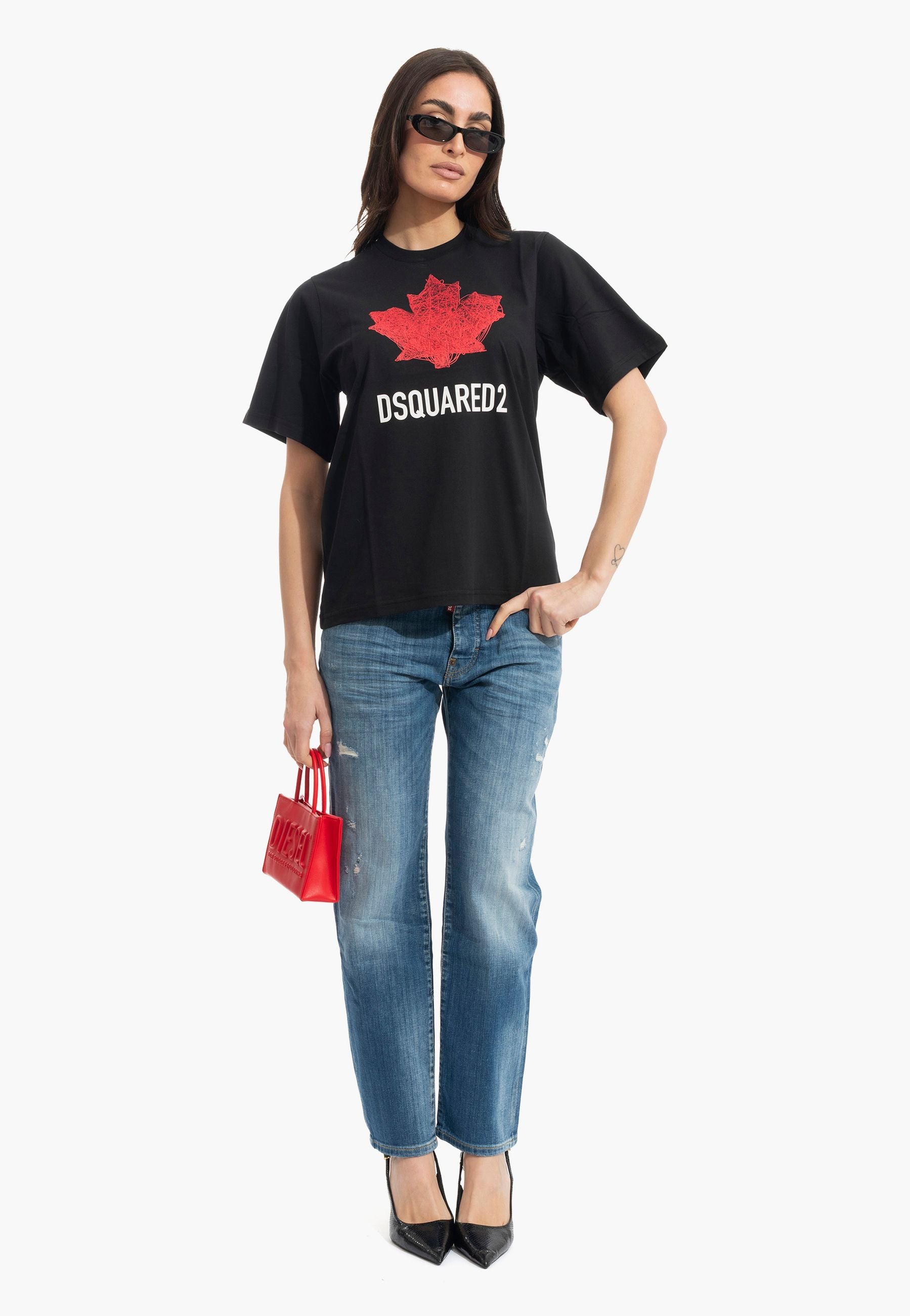 Logo Dsquared2 e foglia d'acero sul petto