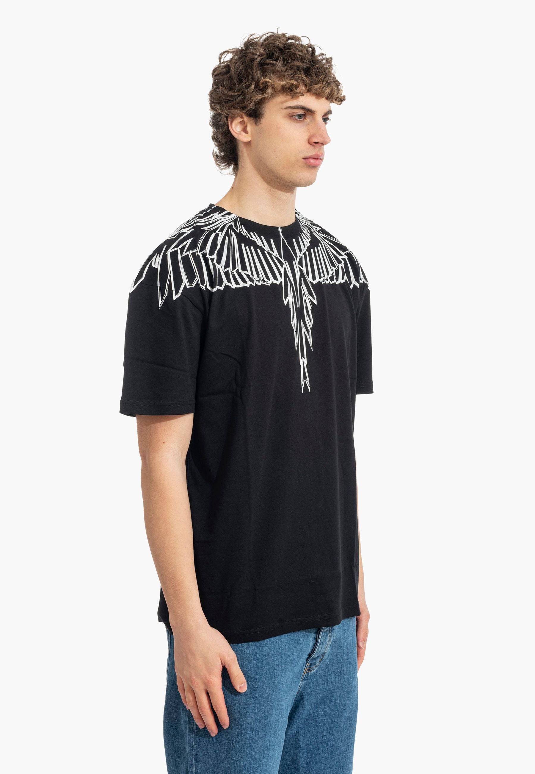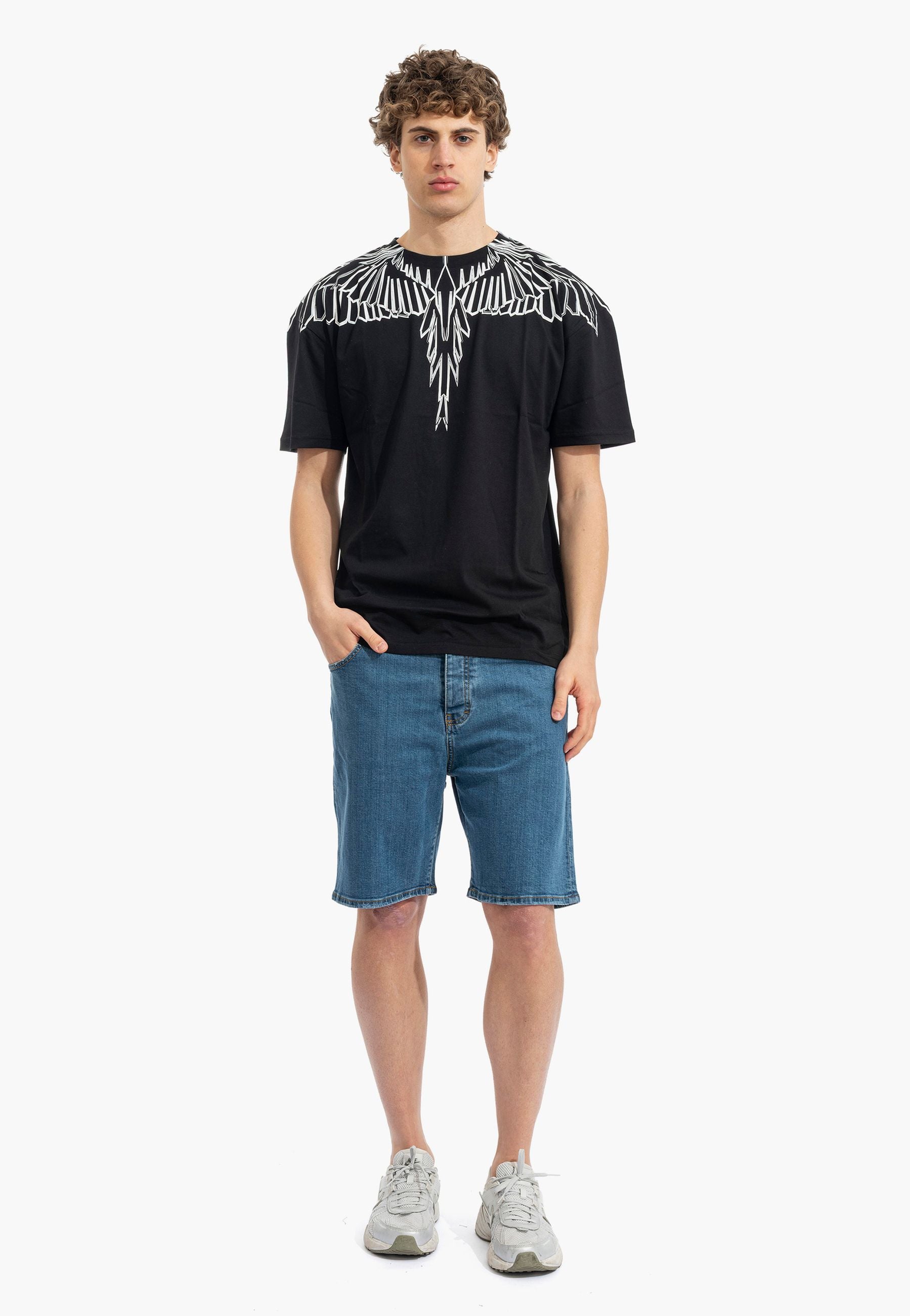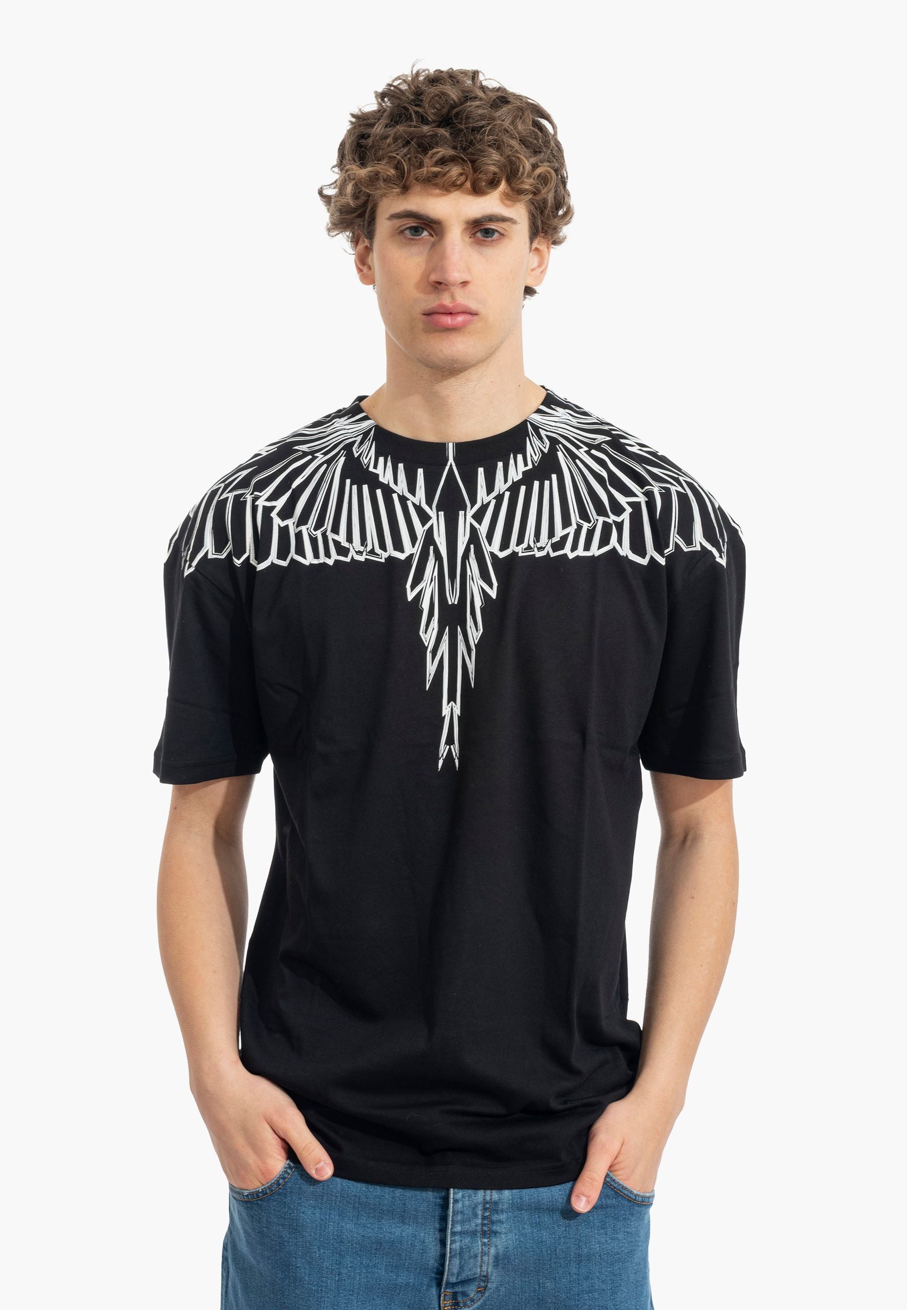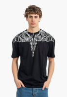T-shirt a manica corta dal forte impatto visivo e dallo stile street contemporaneo, realizzata in cotone per offrire comfort e una vestibilità rilassata. Il design è caratterizzato da una stampa ali che avvolge collo e spalle l'estetica inconfondibile di Marcelo Burlon County of Milan. Un capo pensato per chi ama look urbani e di carattere, perfetto da abbinare a jeans o pantaloni casual per un outfit moderno e distintivo. Il modello indossa una taglia L ed è alto 187cm. Si consiglia un lavaggio ed una stiratura a media temperatura. Stagione primavera estate.