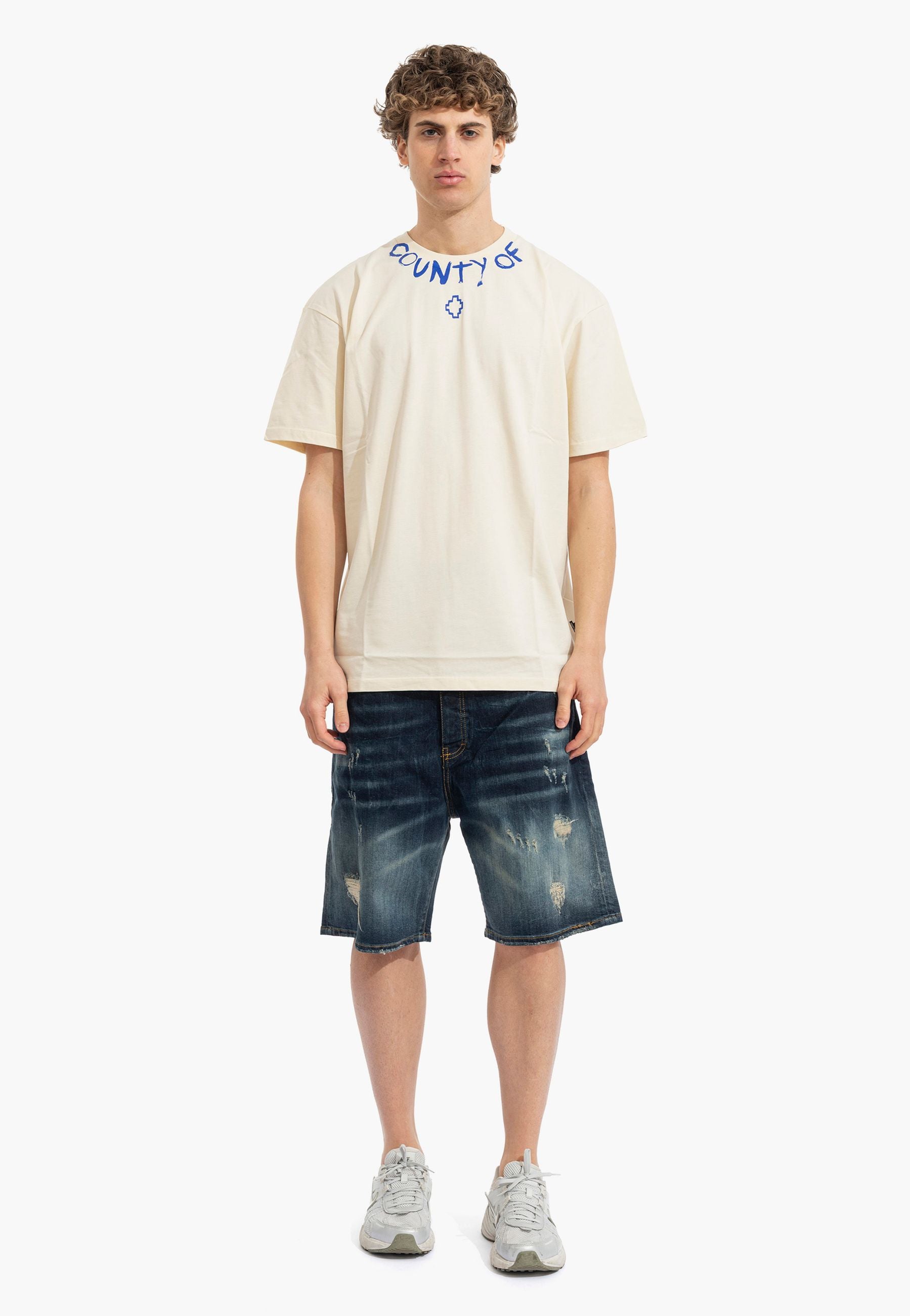 T-shirt a manica corta dal forte impatto visivo e dallo stile street contemporaneo, realizzata in cotone per offrire comfort e una vestibilità rilassata. Il design è caratterizzato da una stampa sul colletto avanti e dietro. Un capo pensato per chi ama look semplici ma di carattere, perfetto da abbinare a jeans o pantaloni casual per un outfit moderno e distintivo. Il modello indossa una taglia L ed è alto 187cm. Si consiglia un lavaggio ed una stiratura a media temperatura. Stagione primavera estate.