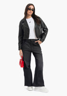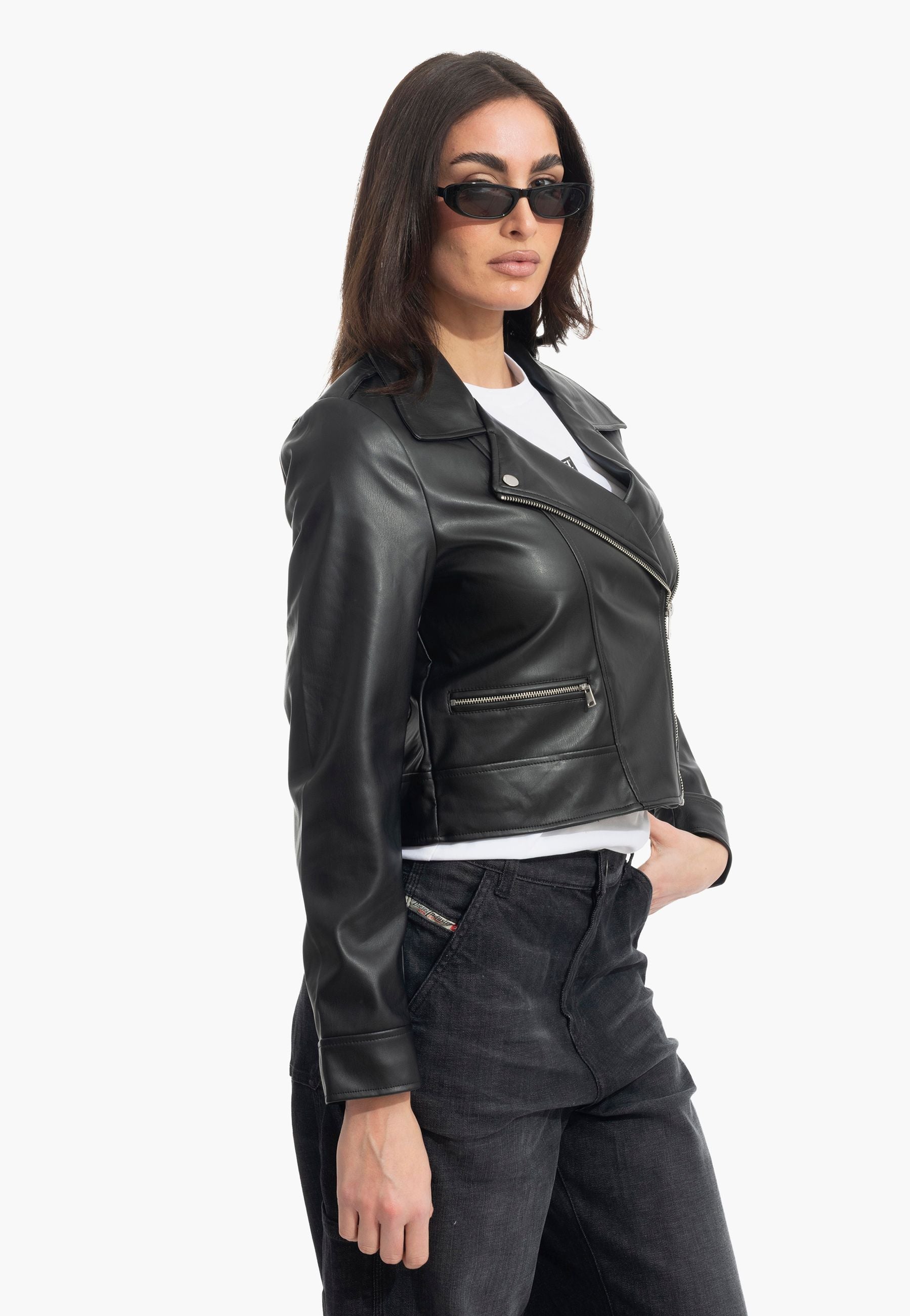 Eleva il tuo stile con questa giacca biker essenziale, pensata per chi non scende a compromessi. Il design asimmetrico con zip e il collo biker caratteristico definiscono un'estetica urbana e sofisticata. Maniche lunghe e tasche funzionali—petto con zip e laterale con chiusura—garantiscono praticità senza sacrificare l'impatto visivo. Un capo versatile che si adatta a ogni stagione e occasione, perfetto per completare look audaci e consapevoli.