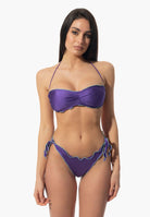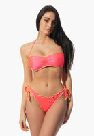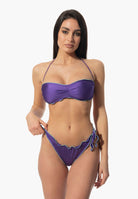 Le costume avec slip ajustable à bords froncés et soutien-gorge bandeau avec rembourrage amovible