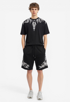 Coordinato a manica corta dal forte impatto visivo e dallo stile street contemporaneo, realizzata in cotone per offrire comfort e una vestibilità rilassata. Il design è caratterizzato da una stampa ali che avvolge collo e spalle l'estetica inconfondibile di Marcelo Burlon County of Milan. Un capo pensato per chi ama look urbani e di carattere. Il modello indossa una taglia L ed è alto 187cm. Si consiglia un lavaggio ed una stiratura a media temperatura. Stagione primavera estate.