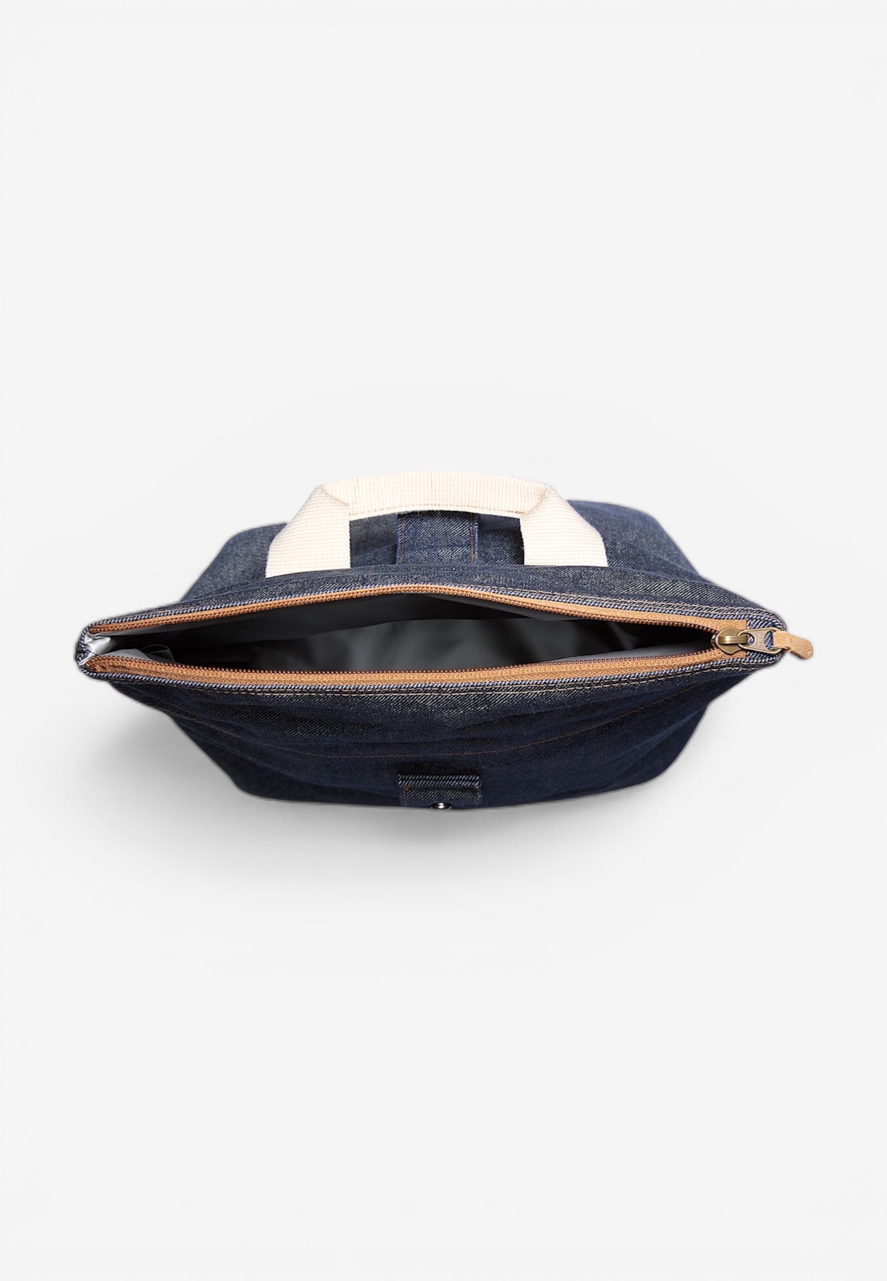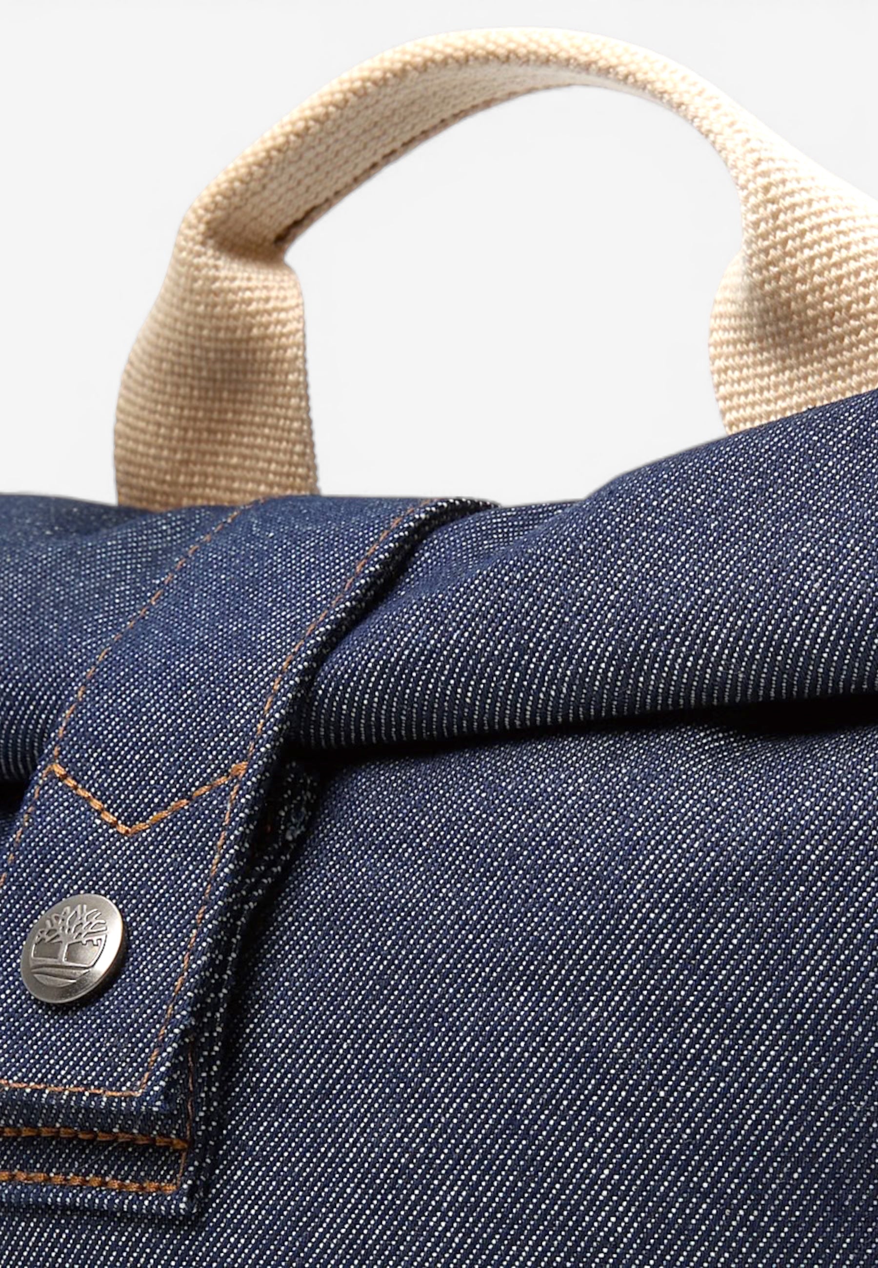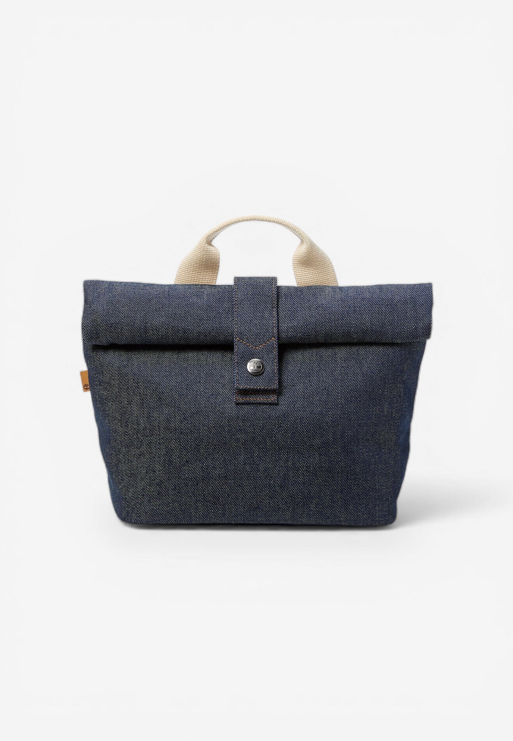 Realizzata in 100% cotone, questa borsa portapranzo in denim presenta tiralampo con estensioni in pelle, un'etichetta in pelle a forma di rombo con logo Timberland ad albero inciso e uno scomparto principale con zip. Modello con chiusura roll-top con bottone a pressione.